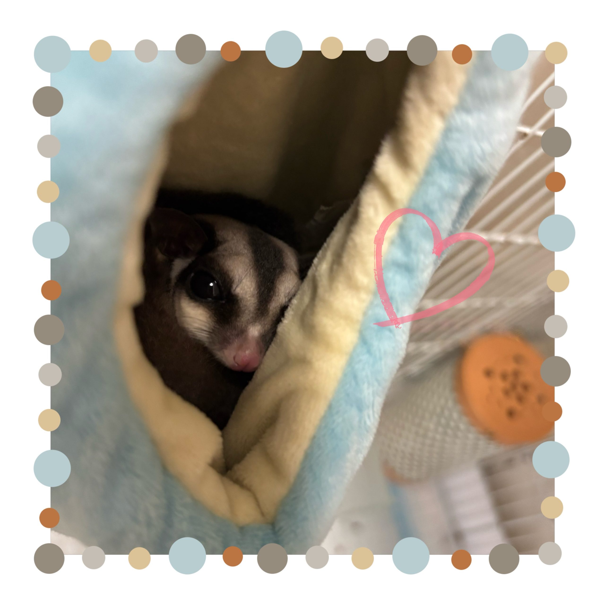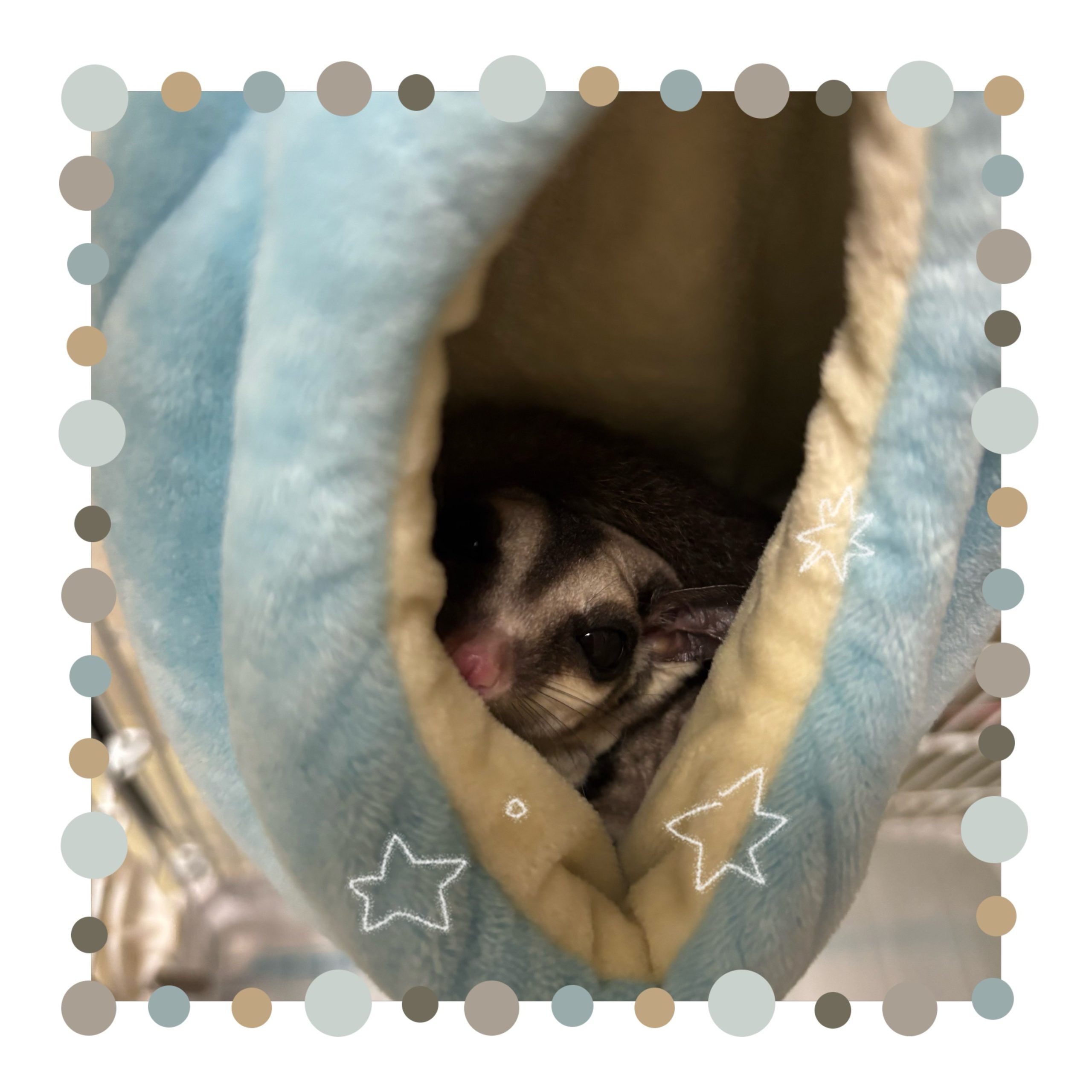 ホテルにお泊まり中のフクロモモンガのゆずちゃんです