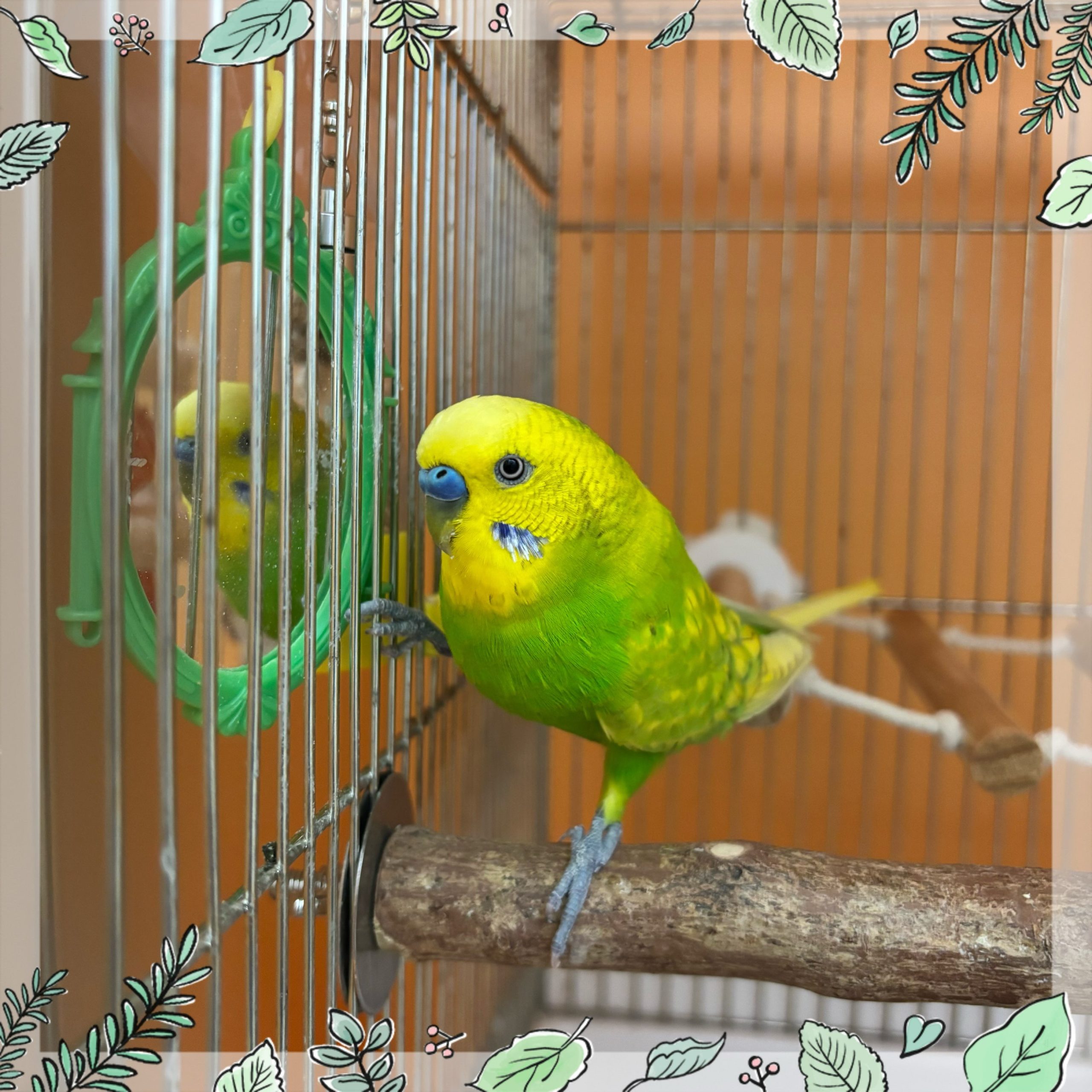 ドリーちゃん ホテルにお泊まりに来てくれているセキセイインコのドリーちゃん ホテル常連さんです 鏡がお気に入りの様子 粟玉ボールもお気に入りみたいです 楽しそうに揺らしていました🎶 お迎えまでゆっくりしていってね〜