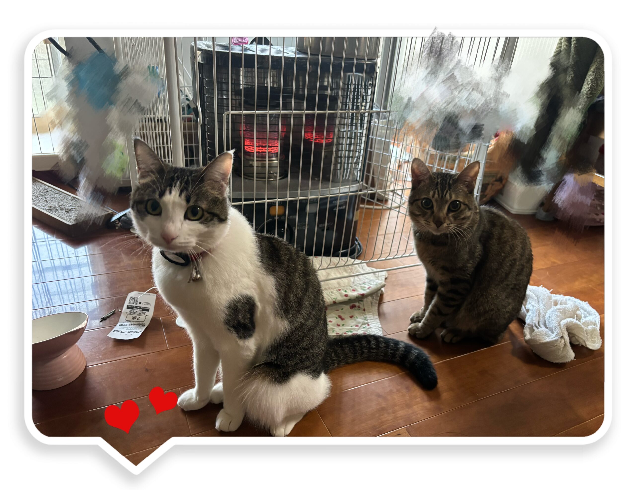 ストーブ前で整列してご飯を待っている芍薬さんと空木Jさん