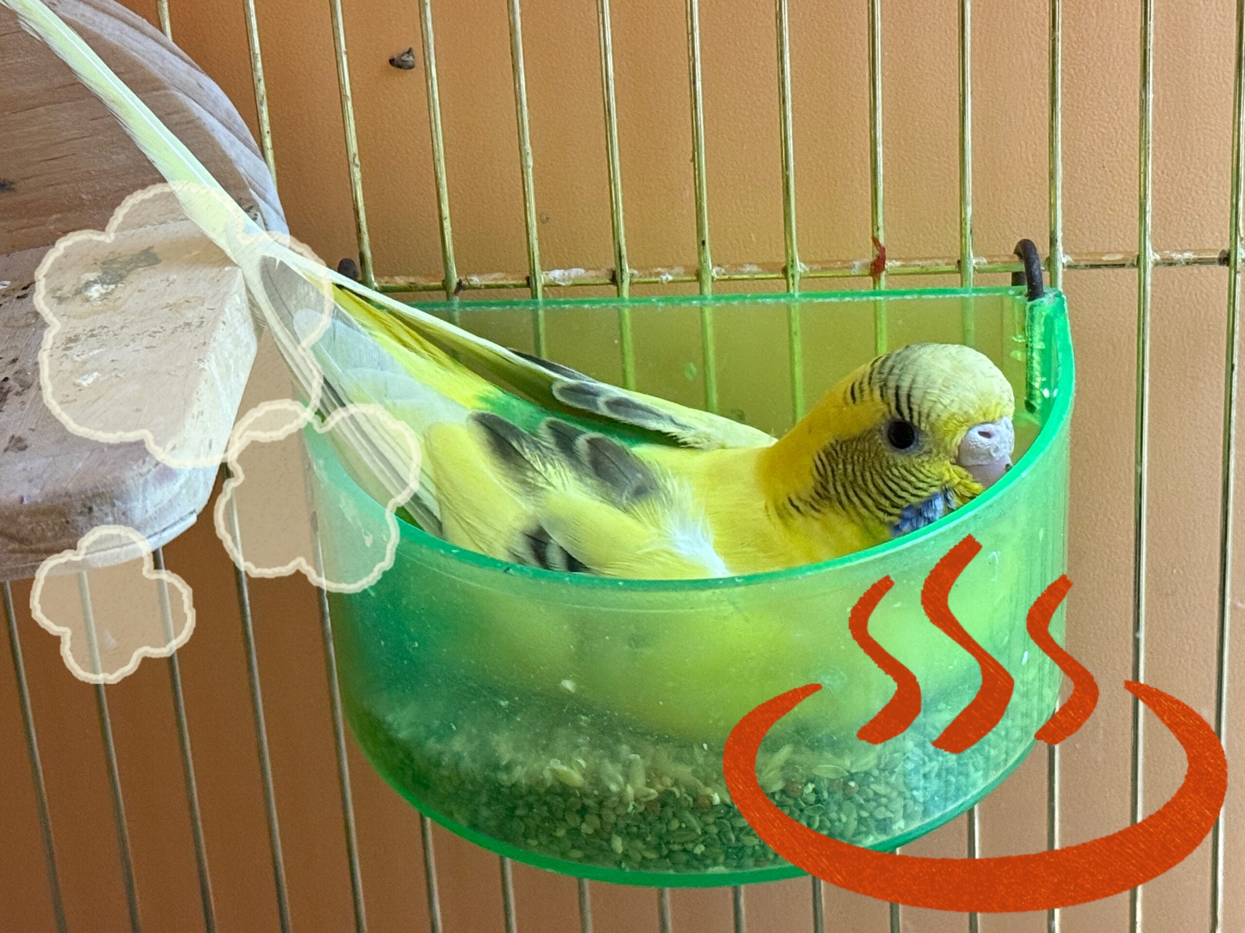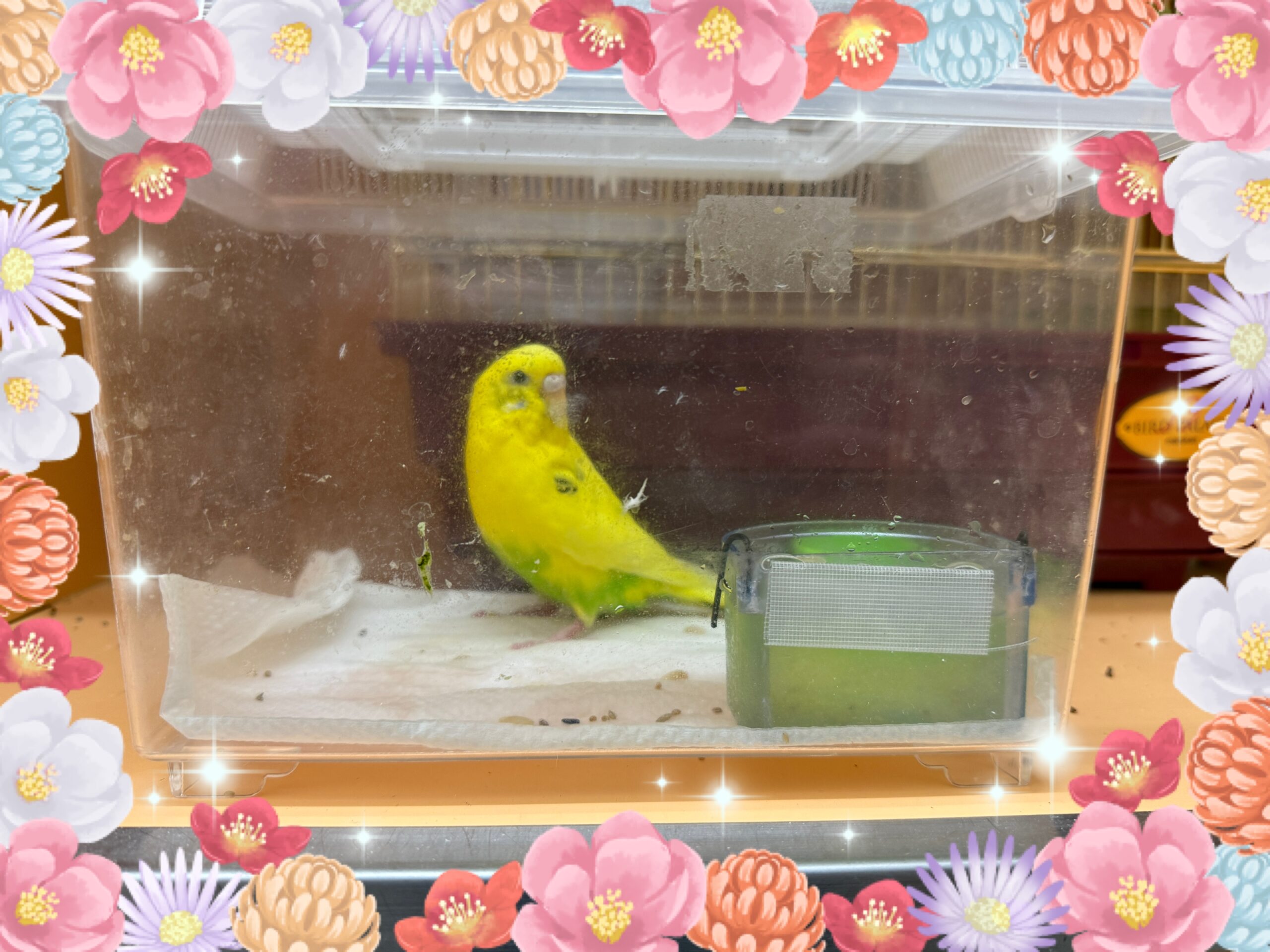とら5ちゃん&ぷっちょちゃん&ドリちゃん&アザトちゃん セキセイ一家のとら5ちゃん、ぷっちょちゃん、ドリちゃん、アザトちゃんがお泊まり中です! 訳あってぷっちょちゃんだけ個室です😅 そしてこちらでは温泉…ではなくご飯の器に収まってます♨️ 病院のセキセイたちもいるので賑やかです🙌