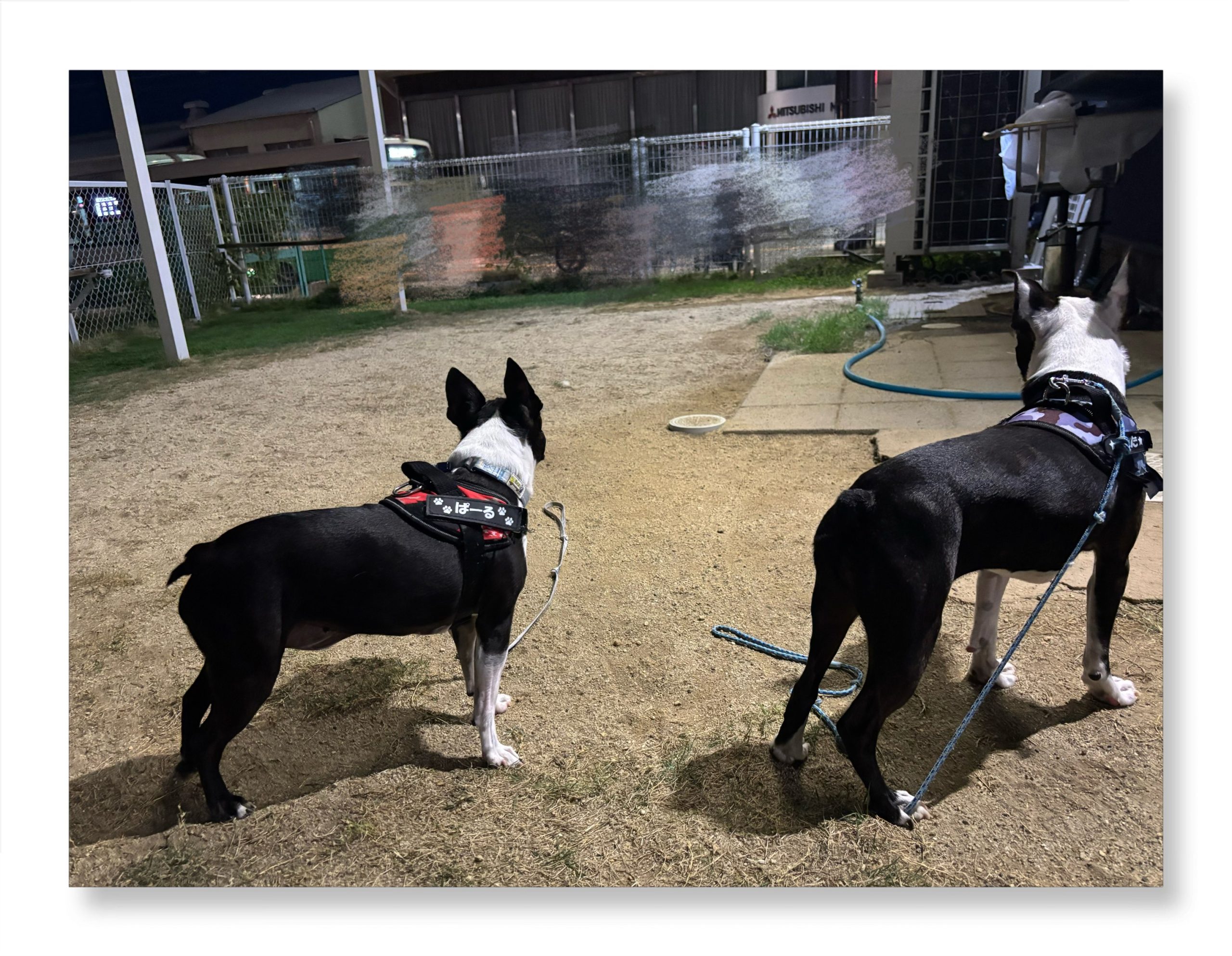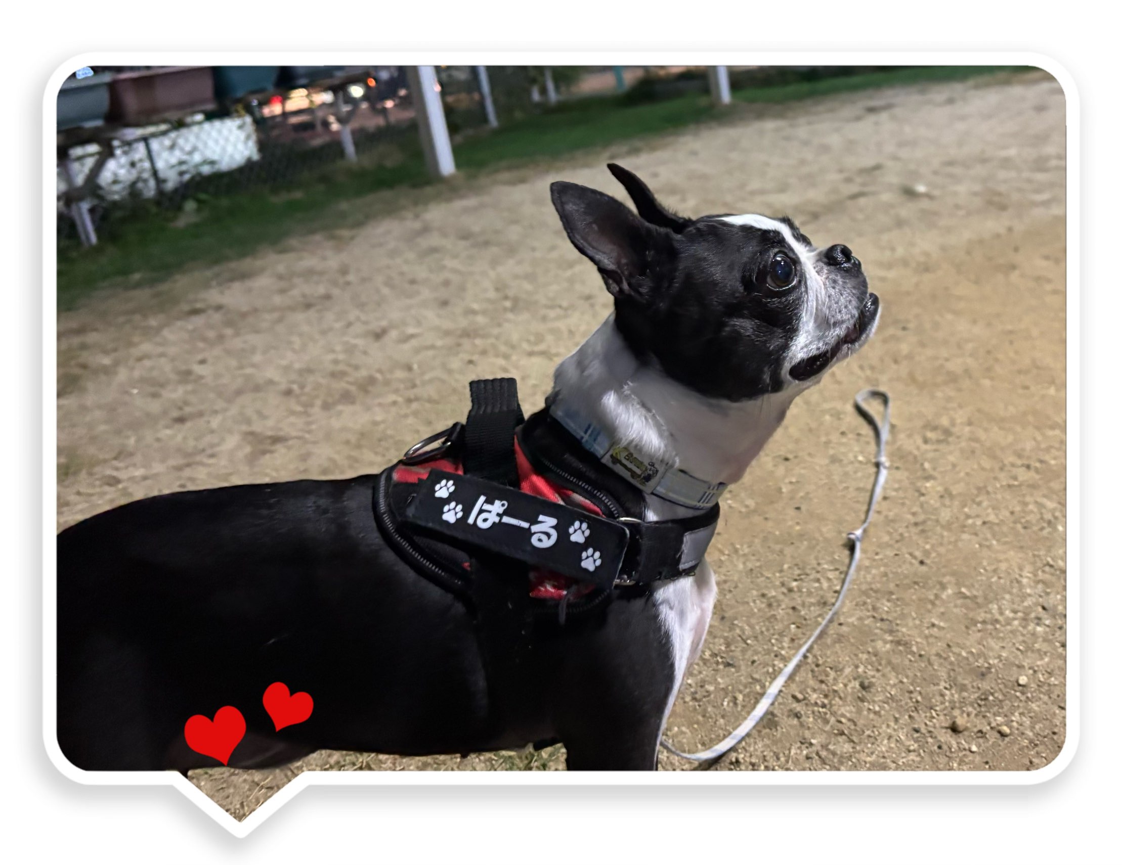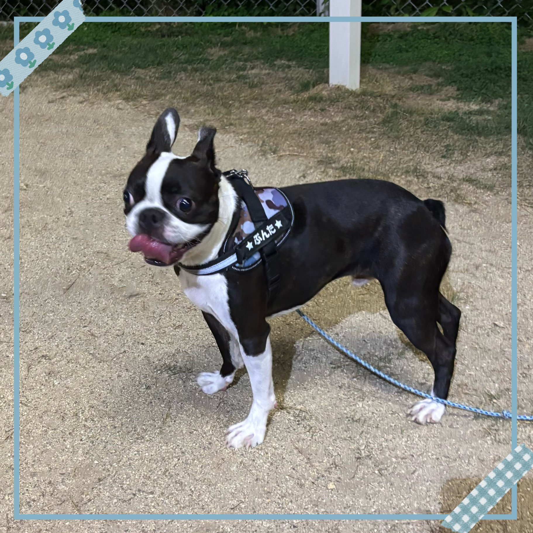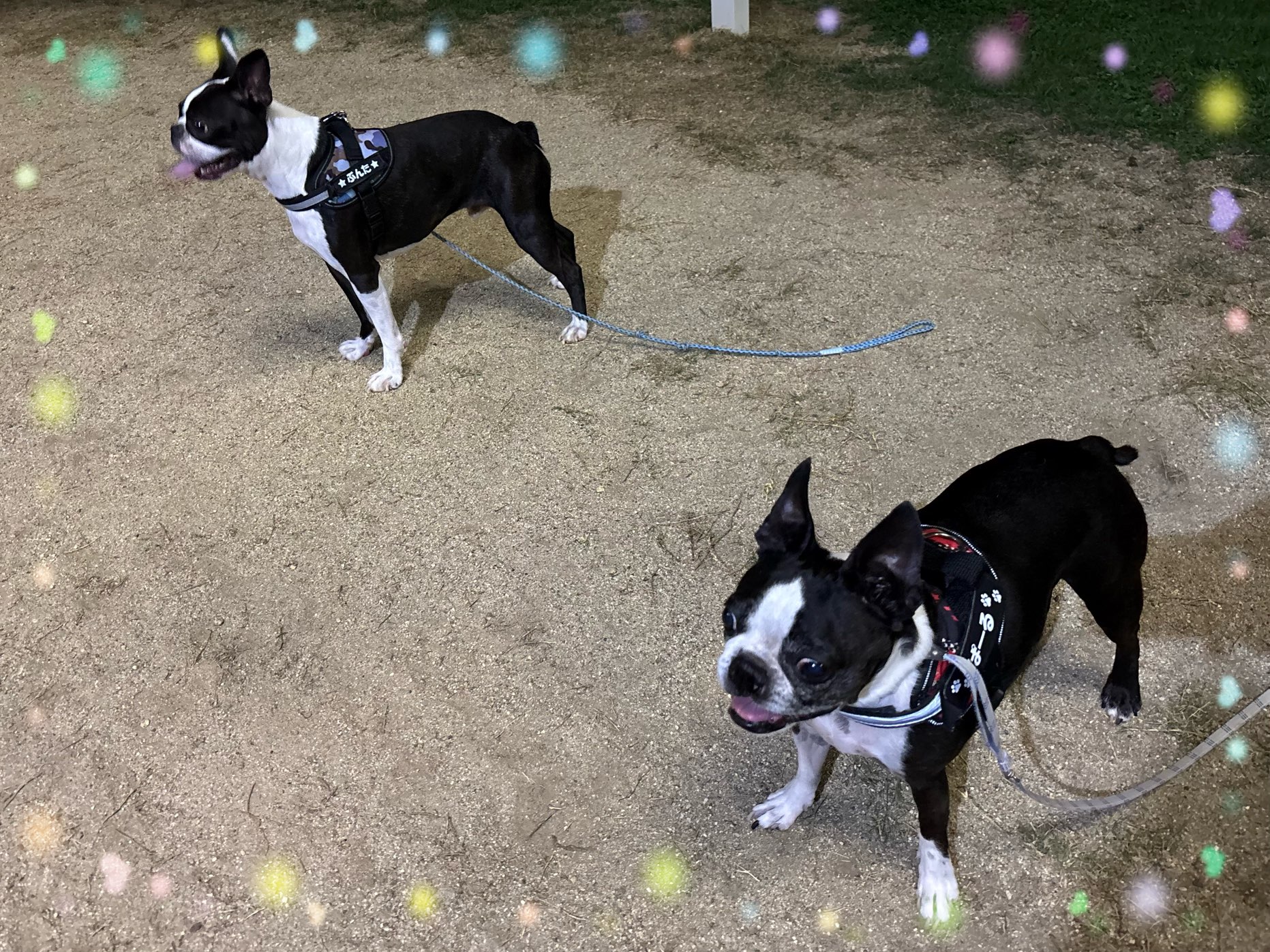 ホテルにお泊まりに来てくれているボストンテリアのぱーるちゃん&ぶんたちゃん🐶