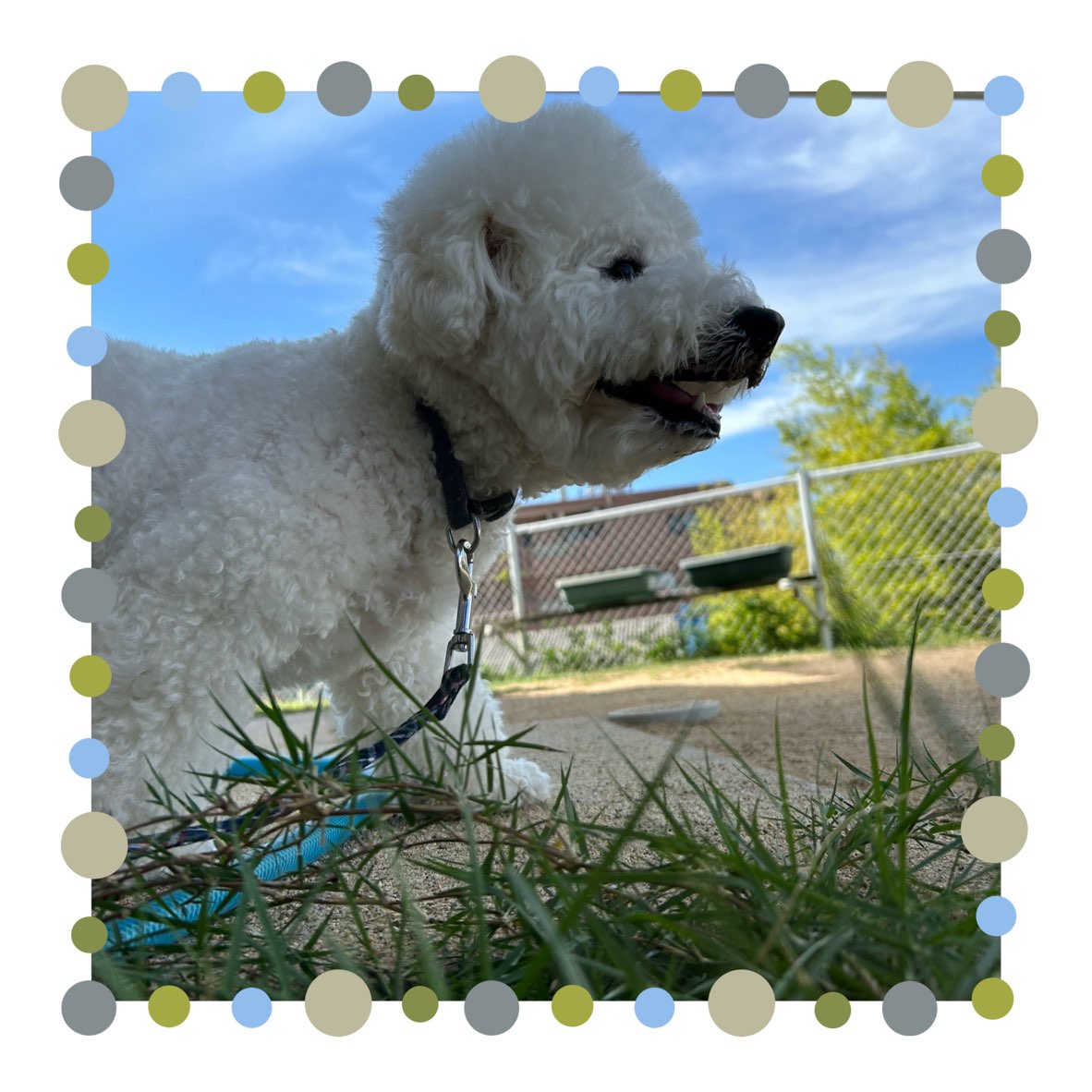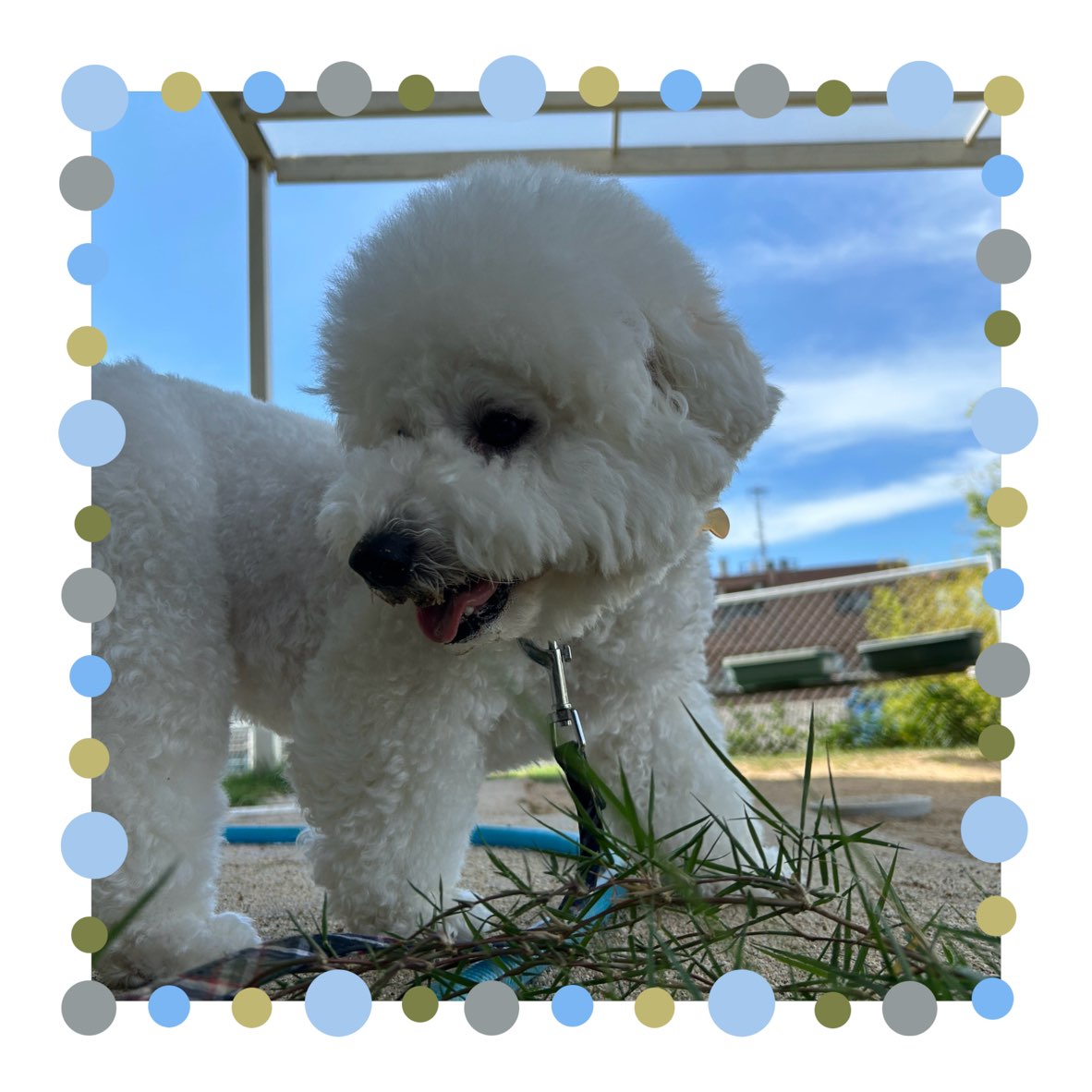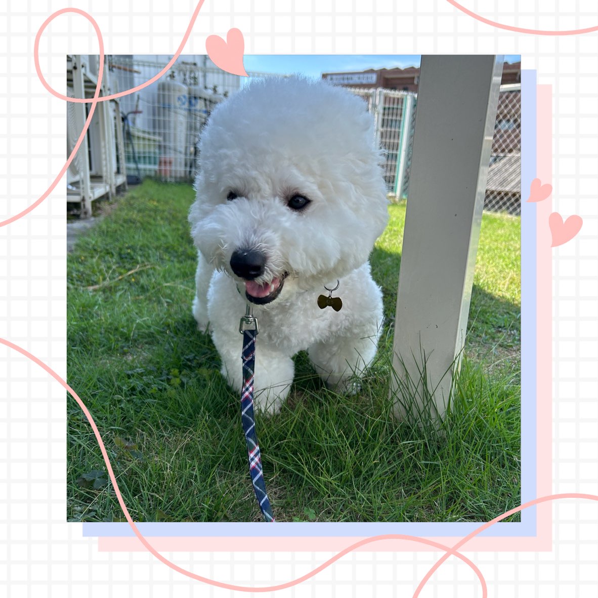むうちゃん ホテルにお泊まりに来てくれているビション・フリーゼのむうちゃん🐶 いつでもニッコニコなむうちゃん ランに出てもとても楽しそうです 地面目線のむうちゃん 背景の青空とむうちゃんで爽やか☀️ お迎えまでいっぱい遊ぼうね〜 ゆっくりしていってね〜