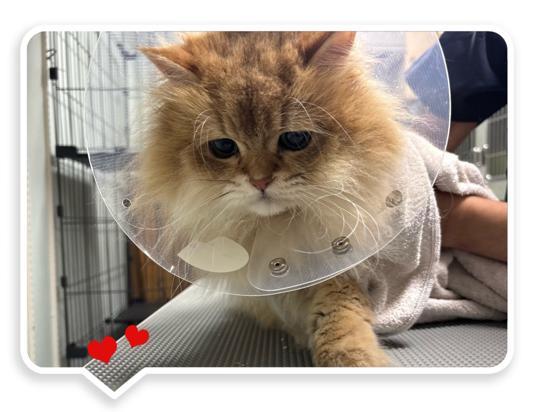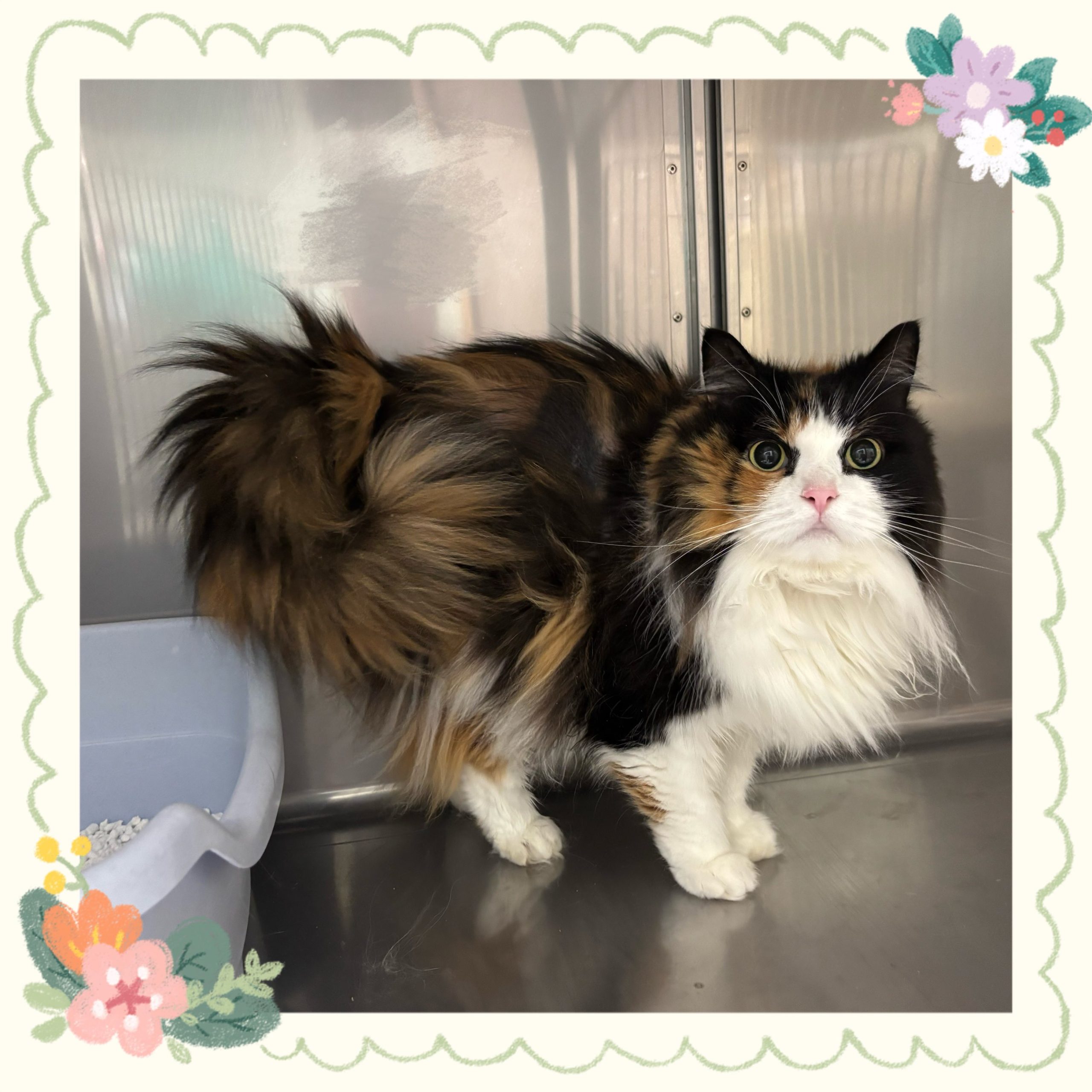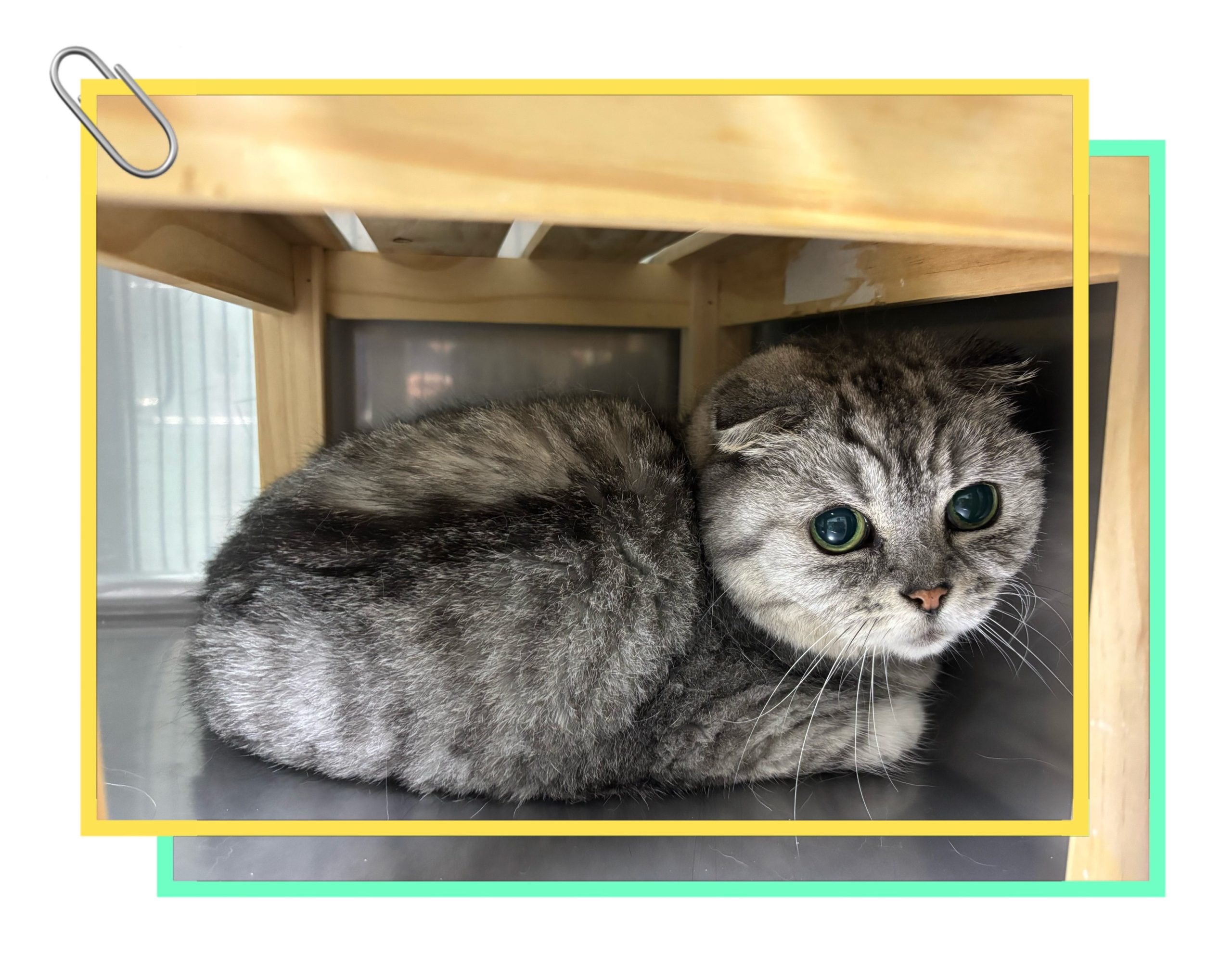 ゴージャスな装いでスタッフにすりすりしてくれるスコティッシュフォールドのアリーシャちゃん