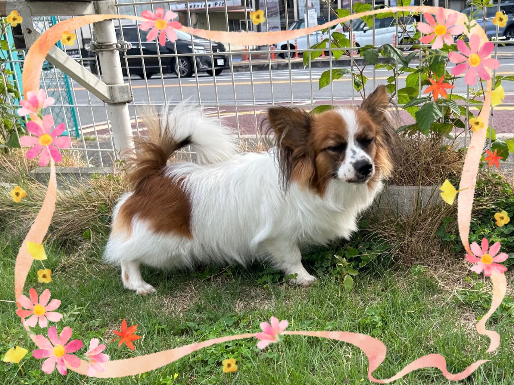パピヨンのコハクちゃんが初めてのお泊まりに来てくれてます!