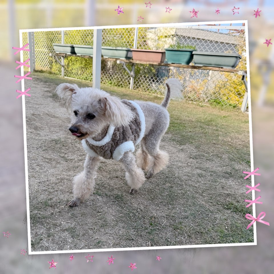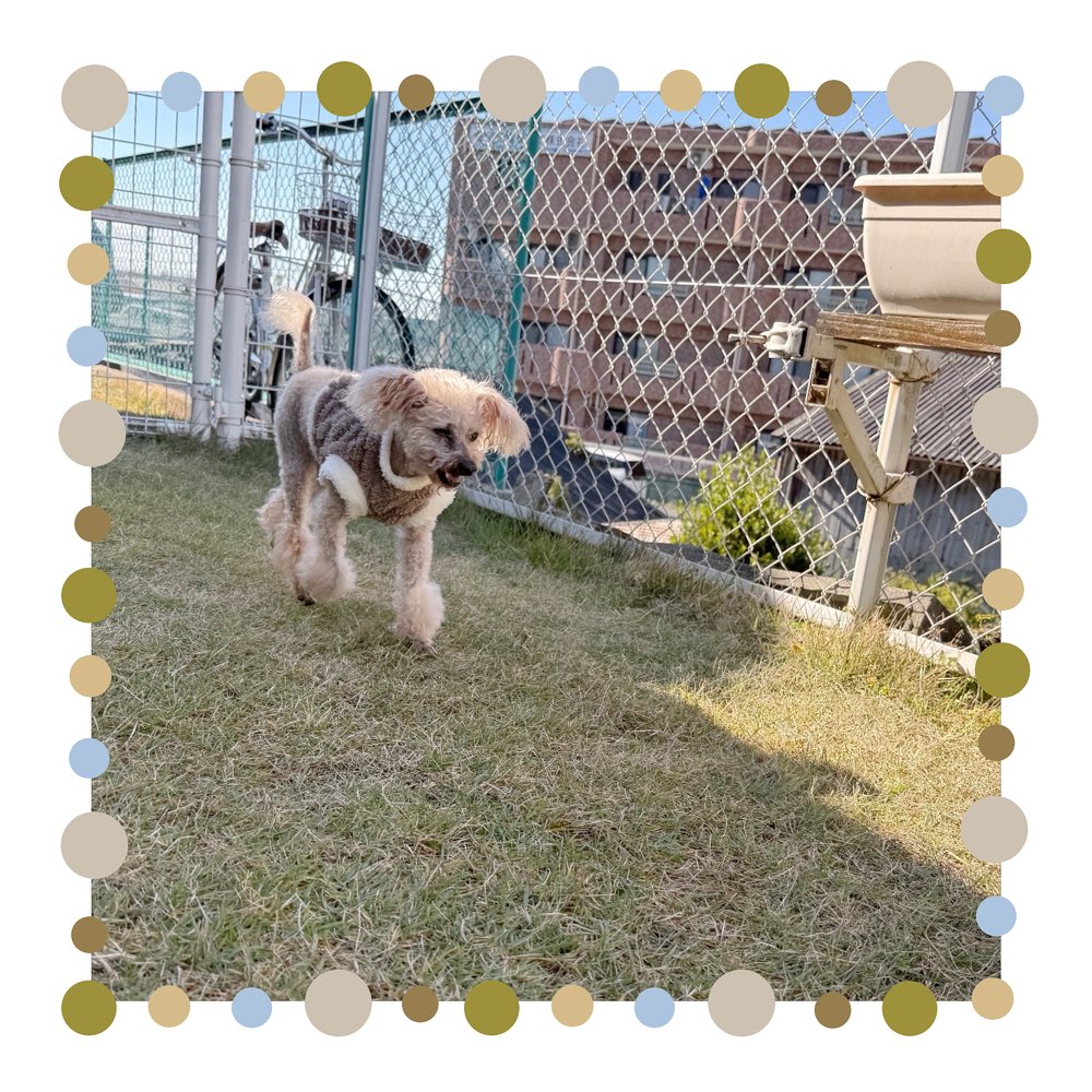 あったかそうなモコモコのお召し物で寒さも気にせず駆け回っています!