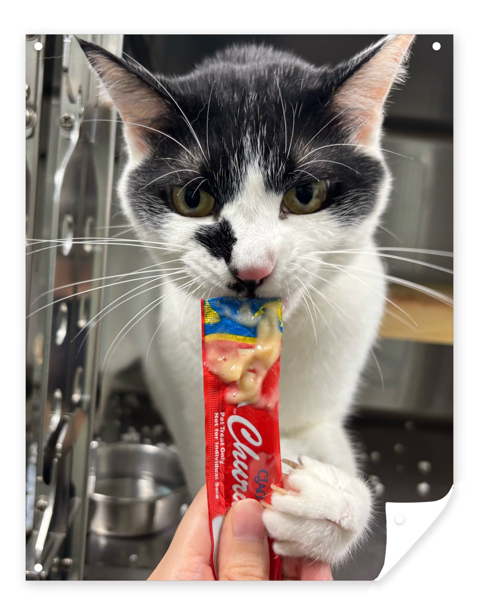 ちゅーるを食べる勢いが強すぎて色んなところからちゅーるが出ています💦