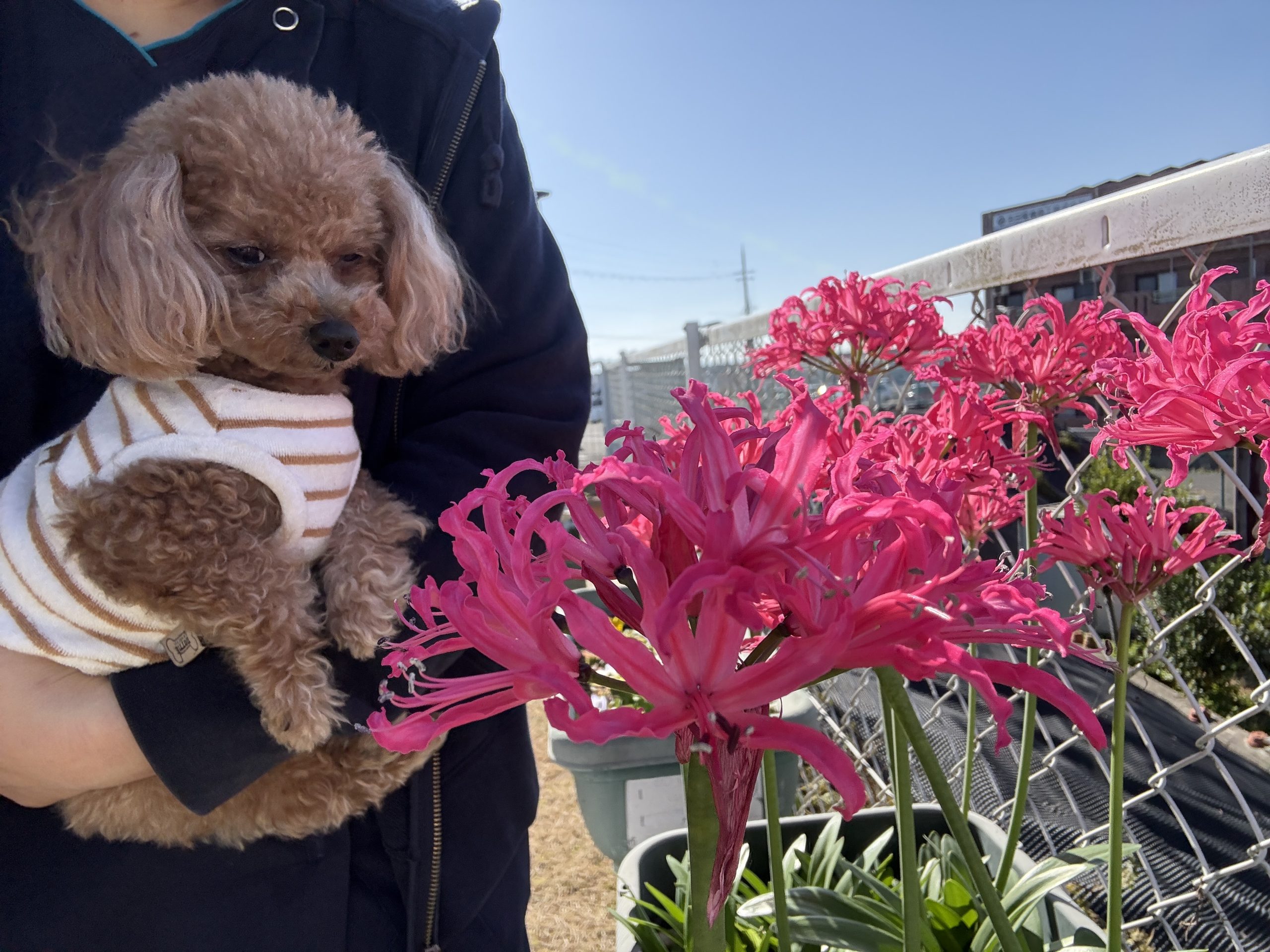 ハナちゃんのお名前にちなんで満開のダイヤモンドリリーとパシャリ📸