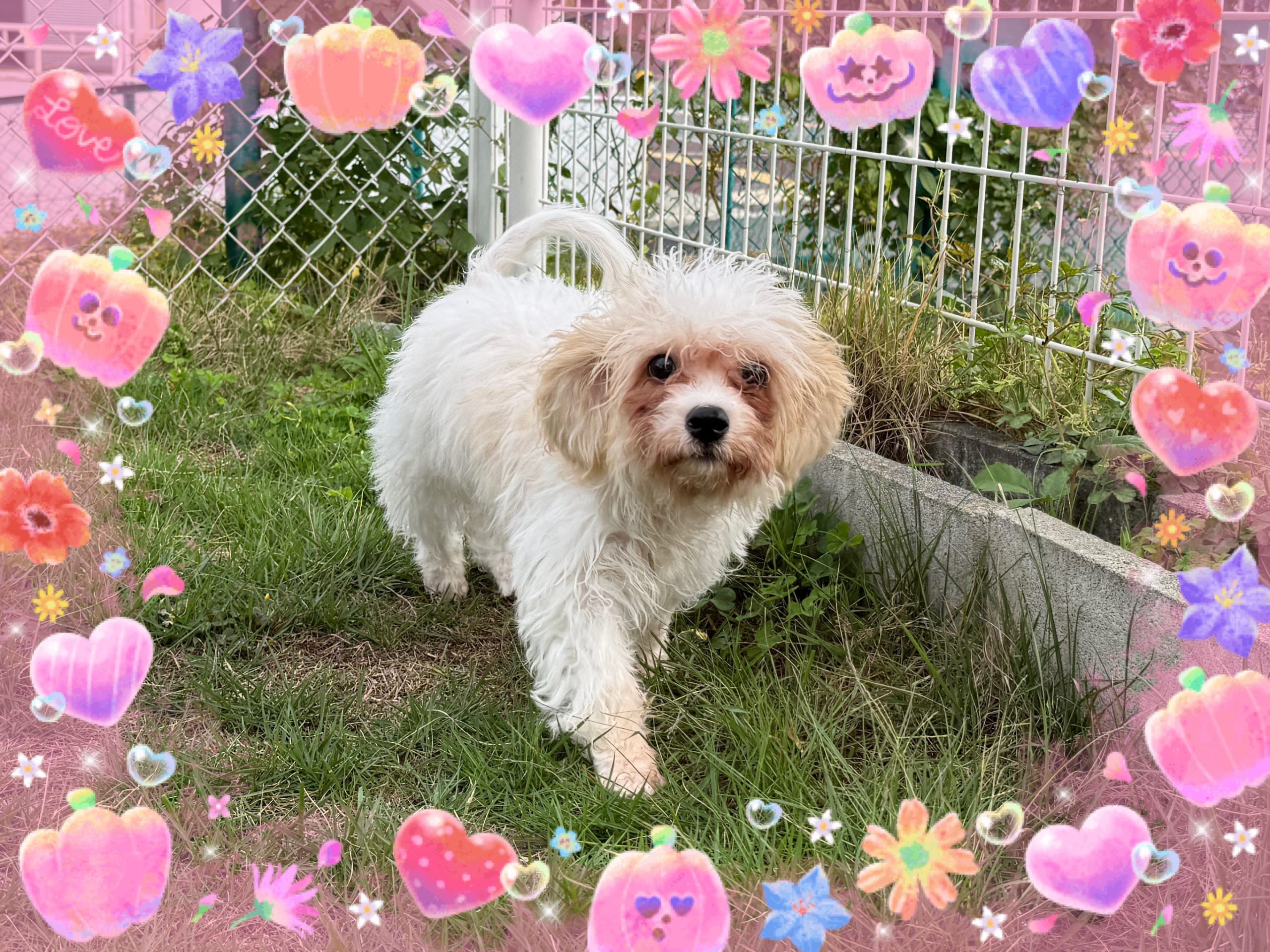 ミミちゃん ミックス犬のミミちゃんが初めてのお泊まりに来てくれてます! ビジョンフリーゼとキャバリアのミックスさんです✨ まだ生後4ヶ月のミミちゃん、跳ねるようにランを駆け回ってます💨 お迎えまでにいっぱい遊ぼうね🙌