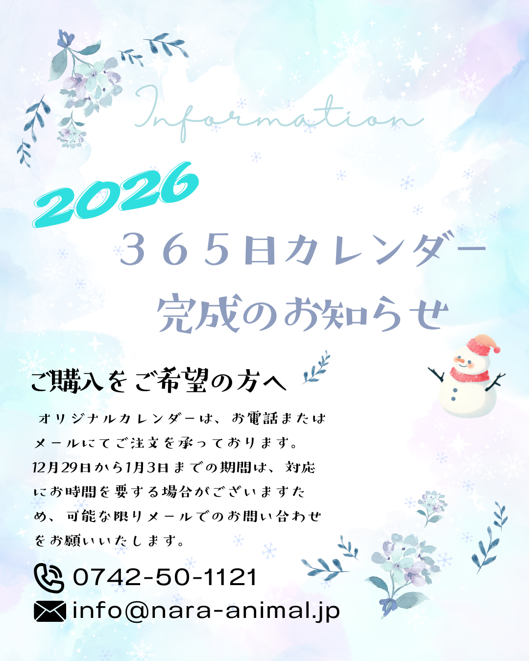 今年からカレンダーは、お電話またはメールでの注文予約販売とさせていただくことになりました。
