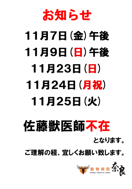 11月のお知らせ